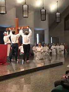 The Norbertine Order is known for the solemnity of its liturgies, reflecting Norbert's devotion to the Eucharist. Members of the community wear the Order's traditional white habit in Church. The Community chants the daily office from its own liturgical books in English each day, with Marian hymns chanted in Latin.