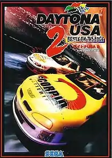 Daytona USA 2: Battle on the Edge (known simply as Daytona USA 2 (DAYTONA USA2, Deitona USA 2) in Japan), also known as Sega Racing Classic 2, is an arcade racing game released by Sega in 1998 as a follow-up to the extremely successful Daytona USA. The game featured vastly superior graphics, utilizing the Sega Model 3 hardware. The majority of Daytona USA 2 cabinets were released as deluxe models (with far fewer Twin Cabinets), which could be linked together for up to sixteen players. A notable change from the original is the ability to select a car and corresponding driver, each with varying capabilities for varying levels of player experience. Just like before, the game has three courses – a Beginner course with 8 laps with a distance of 1 mile (1.6 km), an Advanced course with 4 laps with a distance of 2.5 miles (4.0 km), and a long Expert course with 2 laps with a distance of 5 miles (8.0 km). The 'time lap' mode also returns, and is accessed in the same manner – by holding down start at the transmission select screen. Like the original game, mirrored versions of the tracks can also be played by holding down the Start button when selecting the course. It is recommended, however, that the player has had mastery of the course beforehand. By request, an arcade operator could put the game on Grand Prix or Endurance mode to increase the number of laps in a game. Finishing a race in the top 3 in any course allows the player to view an "ending" and see the game credits. An addition to the game was the "slingshot", corresponding to advanced NASCAR drafting techniques.
