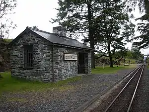 Dduallt railway station (English: Black hill) (pronounced [ˈðɨ.aɬt]) is a passenger station on the narrow gauge Ffestiniog Railway in northwest Wales, which was built in 1836 to carry dressed slate from Blaenau Ffestiniog to Porthmadog for export by sea.
