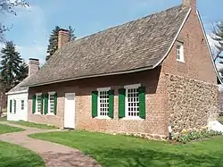 The DeWint House, in Tappan, New York, is one of the oldest surviving structures in Rockland County and is an outstanding example of Hudson Valley Dutch Colonial architecture.[3] It was built using brick and indigenous stone in 1700 by Daniel DeClark, a Hollander, who emigrated to America in 1676 and bought the land from the native inhabitants in 1682. The date of construction is marked by glazed bricks incorporated into the façade.
