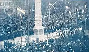 The monument was an idea of the Mayor of Apeldoorn, H.P.J. Tutein Nolthenius.[1] The project was funded through a collection campaign among residents of Apeldoorn, who donated 3,518 Dutch guilders and 37 and a half cents. The monument was intended to be a gift from the people of Apeldoorn to Queen Wilhelmina and her fiancé Prince Hendrik, the Duke of Mecklenburg-Schwerin on the occasion of their marriage. Formally it was dedicated to Queen Wilhelmina's mother Queen Emma the Queen Regent and her late husband King William III.