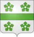 ![]() Argent, on a vert fess accompanied by four Cinquefoils of the same set one on each canton of the shield | |