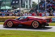 The De Tomaso brand was acquired by Hong Kong–based IdealVentures in 2014, the same company who had acquired German automobile manufacturer Gumpert. Under the new management, work was started to revive the brand after a failed attempt in 2009. After an advertising campaign based on the company's history and some teaser videos of the new car in development under the code name "Project P", the company introduced the new sports car at the 2019 Goodwood Festival of Speed.[3] The new car, called the P72 uses a carbon fibre monocoque chassis constructed to LMP1 standards and is based on the Apollo Intensa Emozione. Unlike the Intensa Emozione, the car is meant to be a grand tourer.[4]