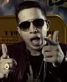 In 2004, at the age of 19, Castillo met with another young reggaetón musician by the name of Austin Santos—better known to the public as Arcángel—and the two decided to form a duo, Arcángel & De la Ghetto. The pair debuted with their single "Ven Pégate", which was featured on Naldo’s mixtape, Sangre Nueva (‘new blood’), in 2005. From there, Castillo was signed to Zion's label, Baby Records, and immediately began to make music. Castillo has appeared on numerous reggaetón compilation albums and collaborations, including the album Mas Flow: Los Benjamins. In 2006, De la Ghetto officially began his solo career, appearing the following year on two hit singles, as well: a remixed version of "Siente el Boom" (‘feel the boom’) by Tito el Bambino, plus a collaboration with Randy called “Sensación del Bloque” (‘street sensation’), which has been viewed on YouTube over 200 million times, as of July 2023.[2]Masacre Musical was then released in 2008.[3] Masacre Musical peaked at #46 on the Billboard Top Latin Albums chart in the U.S.;[4] its lead single, "Tú Te Imaginas" (‘you imagine’), peaked at #33 on the Billboard Hot Latin Tracks chart.
