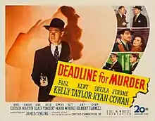 Deadline for Murder is a 1946 American crime film directed by James Tinling and written by Irving Cummings Jr. The film stars Paul Kelly, Kent Taylor, Sheila Ryan, Jerome Cowan, Renee Carson and Marion Martin. The film was released on August 1, 1946, by 20th Century Fox.[1][2][3]