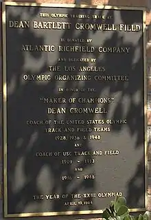 Dean Cromwell plaque at USC's track and field stadium "Cromwell Field"
