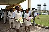 In other countries, the social practices around deathcare vary compared to the U.S. For instance, in Hindu culture, women have been barred from attending cremation rituals, and even from touching the deceased.[14] Before World War Two in Britain, women were "commonly responsible for laying-out the body", but following the war were barred from such a role given the expedient professionalization of the deathcare industry.[15]