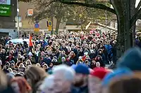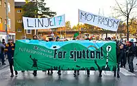In response to the trouble, Linje 17 organised a second anti-racist demonstration a week later on 22 December. 16,000 people participated, including many local and well-known artists and parliamentary figures.[8]
