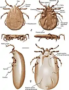 - ↑ Chitimia-Dobler, Lidia; Mans, Ben J.; Handschuh, Stephan; Dunlop, Jason A. (2022). "A remarkable assemblage of ticks from mid-Cretaceous Burmese amber". Parasitology. 149 (6): 820–830. doi:10.1017/S0031182022000269. ISSN 0031-1820. PMC 10090602. PMID 35241194. S2CID 247227499.