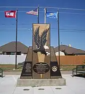 The War Memorial located opposite the Del City Community Center has several monuments dedicated to those who were killed in combat who were either born or lived in Del City. The memorial is dedicated to twenty one servicemen killed while serving in various branches of the U.S. Military during World War II, the Vietnam War and the Iraq War. Dedicated in November 2010, the memorials include an armored personnel carrier and a Fallen Soldier Battle Cross being watched over by two crouched U.S. servicemen. The memorial also has a time capsule.[11]