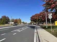 DE 72 was extended to its present southern terminus at DE 9 the next year, following Chapel Street, Sunset Lake Road, and Wrangle Hill Road.[18] In 1980, the Chapel Street grade crossing of the Northeast Corridor rail line in Newark was removed, and DE 72 was realigned farther to the east to follow Library Avenue across the railroad tracks before continuing north on DE 2 and Possum Park Road to Paper Mill Road in Milford Crossroads.[19] DE 2 was realigned to follow DE 72 around the eastern part of Newark on Library Avenue by 1990.[20] In 2013, the DE 2 concurrency between DE 4 and DE 273 was removed due to the truncation of DE 2 to the DE 273 intersection.[21] On April 29, 2016, Governor Jack Markell, DelDOT secretary Jennifer Cohan, and local officials attended a groundbreaking ceremony for a $7 million project that rebuilt the interchange with DE 1 into a diverging diamond interchange, the first such interchange in Delaware.[22] The diverging diamond interchange configuration was put into place on November 19, 2016.[23]