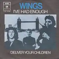 "Deliver Your Children" is a song written by Denny Laine and Paul McCartney that was first issued on Wings' 1978 album London Town. It was also released as the B-side of Wings' single "I've Had Enough". In the Netherlands, it received enough airplay to be ranked on the national charts along with its A-side, and joint single reached No. 13.[1] On some charts within the Netherlands "Deliver Your Children" was ranked alone on the single charts, and it reached No. 9 on the Stichting Nederlandse Top 40 chart.[2] Laine also released solo recordings of the song.[3]