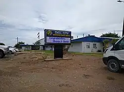 In 1979, there were three grocery stores and four bars.[10] By 1989, there was only one grocery and general store, Dell City Mercantile, which had burned down in a fire that year. There were also three bars, two gas stations, two restaurants, a hardware store, and a video rental business.[14] In 2016, the city had one grocery store, Two T's Grocery, in a former bar. Additionally as of that year there was one restaurant, Spanish Angel Cafe.[10]