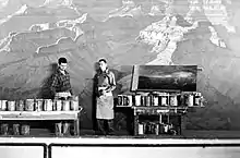 He also painted scenery for movies such as The Shoes of the Fisherman for which he recreated the panel about the life of Moses, and parts of the Last Judgment by Michelangelo, for the interior of the Sistine Chapel (MGM Studios). He created the city of Jerusalem for The Robe (which won the 1953 Academy Award for Best Art Direction–Set Decoration, Color), after which he created a fantastic 600 foot cyclorama that backed the safari camp set of The Snows of Kilimanjaro. Other films he created dioramic scenes for included Billy Wilder's Some Like It Hot (nominated for the 1959 Best Art Direction-Set Decoration, Black-and-White Oscar), The King and I, Niagara, Alfred Hitchcock's North by Northwest (the Mount Rushmore scene) and many others. During his term at 20th Century Fox, he also worked on many of the Marilyn Monroe pictures, and even one of the Elvis Presley movies.