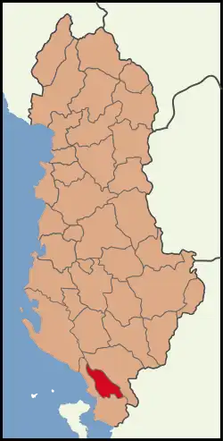 Delvinë District (Albanian: Rrethi i Delvinës) was one of the 36 districts of Albania, which were dissolved in July 2000 and replaced by 12 counties. It had a population of 10,859 in 2001, and an area of 367 km2 (142 sq mi).[1] Its population included a substantial Greek community.[2][3] The district is in the south of the country, and its capital was the town of Delvinë. Its territory is now part of Vlorë County: the municipalities of Delvinë and Finiq (partly).