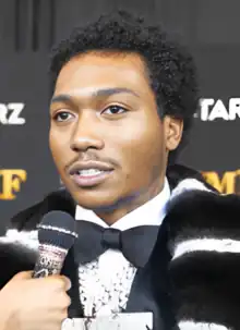 Flenory Jr. explains that he received a call from his dad in prison, in which he told him that rapper Curtis "50 Cent" Jackson had the rights to the Black Mafia Family story and a movie or a TV series would be produced.[3] Black Mafia Family would portray the true story of two Detroit brothers, Demetrius "Big Meech" and Terry "Southwest T" Flenory, who make a name for themselves as notorious drug dealers in the 1980s, becoming one of the most influential crime families in America. In the early 2000s, Flenory founded BMF Entertainment, a drug trafficking and money laundering operation that encompassed a record label, hip-hop magazine, and music promotional agency.[4] The first casting call was set in Atlanta, and his father wished for him to meet Jackson so that he could get a sense of how the adaptation was being produced. After falling short of finding an actor, while present at the casting calls, the rapper/executive producer told Flenory Jr. that he wanted to move him to LA and enroll him in acting classes so that he could star in the series as his father. At the time, Flenory Jr. was in enrolled at University of Nevada, Las Vegas studying business.[5] He described the experience as "intense" as he had been taking lessons "five days a week, (sometimes) two times a day, for two years."[6] Jackson shared Flenory Jr.'s father, Demetrius "Big Meech" Flenory was in constant communication with his son, Demetrius "Lil Meech" Flenory Jr. and creator Randy Huggins throughout the whole process of the show's creation.[7][8] In the beginning of the show's creation, Huggin's didn't believe it was imperative for Flenory Jr. to portray his father.[9]