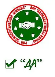 - ↑ "Свидетельство о госрегистрации ПП «Демократическая Абхазия» признано утратившим силу". Apsnypress. 3 February 2017. Archived from the original on 28 February 2017. Retrieved 27 February 2017.