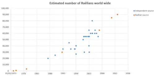 | 2013-12 | 90,000 | 90 countries | International Raëlian Movement | [33] |