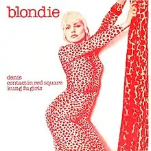 "Denis" was released in February 1978 and scored a number 2 in the UK and broke into the Top 20 in most European countries, including number 1 in Netherlands. In the UK, the song was kept at number 2 for three weeks, first by Kate Bush's "Wuthering Heights"[16][17] and then by Brian and Michael's "Matchstalk Men and Matchstalk Cats and Dogs".[18] Just like "Rip Her to Shreds", the single was issued on both 7" and 12" formats in the UK, and both feature two B-sides, "Contact in Red Square" from Plastic Letters and "Kung-Fu Girls" from Blondie. "Denis" was the only single released in the US from Plastic Letters (with "I'm on E" as the B-side) though it never charted. In 1988, a remixed version of the track was issued as a single from the Blondie/Debbie Harry remix compilation Once More into the Bleach.[19] This time the single reached number 50 in the UK.[20]