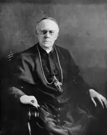 O'Donaghue was named the fifth Bishop of Louisville, Kentucky, on February 7, 1910.[3] He succeeded the late Bishop William George McCloskey, at whose funeral O'Donaghue had preached the previous September. Over the next 14 years, he guided the Catholics of central Kentucky through difficulties like World War I and the 1918 influenza pandemic. He closed the diocese's churches during the pandemic, saying "the civil laws of the community always take precedence over the laws of the church" and adding "I think it was a good thing and the only thing to do."[6] For his efforts and those of the religious sisters and Knights of Columbus in Louisville during the pandemic, General Fred Thaddeus Austin of Camp Zachary Taylor wrote him a public letter of gratitude.[7]