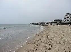 Glennon Road, and the beach named for the street, took their name from Hubert Glennon, a Marine officer who served as the Columbia University rowing coach after World War II, and who donated the beach to the village.[7] To the west is Peter Hagis Beach, which is located on land donated by his widow.[8] Also in the village is Inman Road Beach, named for the Inman family (including Isaiah Inman) who lived on the corner of Lower County Road.[9] Raycroft Beach was named for Louis B. Raycroft, who often summered near Old Wharf Road and Sea Street.[10]