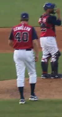 Dennis Dale Lewallyn (born August 11, 1953) is a former pitcher in Major League Baseball and current Pitching coach for the AA Mississippi Braves. He played for the Los Angeles Dodgers, Texas Rangers and Cleveland Indians from 1975-1982. Lewallyn's best season was arguably 1977, where he picked up 3 of his 4 career wins. He posted a respectable 4.24 ERA that season and notched his one and only major league save on September 28, 1977. On that day, Lewallyn pitched 4 innings to hold down a 2-1 Dodgers victory over their arch rival Giants. He saved the game that day for starter Charlie Hough. [1]