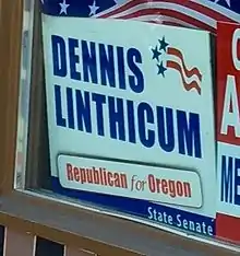 Linthicum won election to the Oregon Senate in 2014. He and Oregon House candidate E. Werner Reschke, were the center of efforts to change candidate filing deadlines - nicknamed the "Whitsett Maneuver".[8] None won approval of the Legislature.
