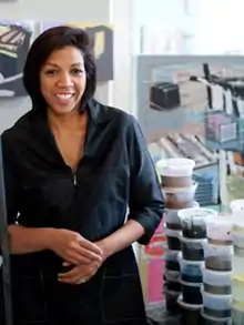 Denyse Thomasos (October 10, 1964 – July 19, 2012) was a Trinidadian-Canadian painter known for her abstract-style wall murals that conveyed themes of slavery, confinement and the story of African and Asian Diaspora. "Hybrid Nations" (2005) is one of her most notable pieces that features Thomasos' signature use of dense thatchwork patterning and architectonic images to portray images of American superjails and traditional African weavework.[1][2]