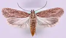 This article incorporates text from this source, which is in the public domain. Keys and description - ↑ Kimber, Ian. "32.039 BF670 Depressaria daucella ([Denis & Schiffermüller], 1775)". ukmoths. Retrieved 2 June 2019.