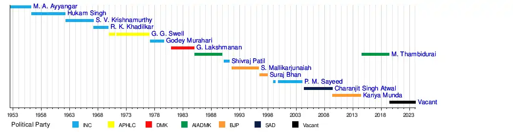 | 1 | M. Thambidurai | AIADMK | 4 years, 309 days | 9 years, 229 days | |