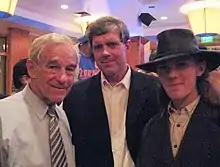 ![]() Derek Black (right) standing with his father Don Black (middle) and American politician Ron Paul (left) in 2007 | |