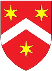 Arms of Blackford of Dunster and Holnicote, Somerset: Gules, a chevron between three estoiles or