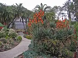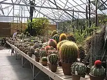 The Desert Garden Conservatory is a large botanical greenhouse and part of the Huntington Library, Art Collections and Botanical Gardens, in San Marino, California.[1] It was constructed in 1985. The Desert Garden Conservatory is adjacent to the 10-acre (40,000 m2) Huntington Desert Garden itself. The garden houses one of the most important collections of cacti and other succulent plants in the world, including a large number of rare and endangered species. The 3,000-square-foot (280 m2) Desert Garden Conservatory serves The Huntington and public communities as a conservation facility, research resource and genetic diversity preserve. John N. Trager is the Desert Collection curator.
