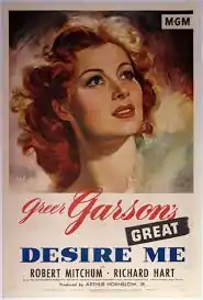 Desire Me is a 1947 American drama film starring Robert Mitchum and Greer Garson. It had a troubled production that included numerous directors and rewrites, and was ultimately released without a credited director.[3]