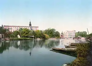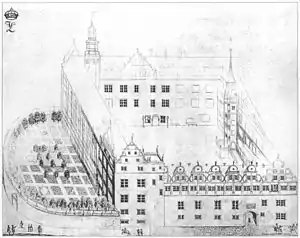 The Dessau Palace (German: Residenzschloss Dessau or Stadtschloss Dessau) in Dessau in the German state of Saxony-Anhalt was a princely palace which mostly served as the main residence of the princes of Anhalt-Dessau and later the Dukes of Anhalt. The palace was one of the first renaissance buildings in the middle of Germany (see also: Saxon Renaissance). Today, there is only one wing remaining, the Johannbau, which offers room to the City History Museum of Dessau.