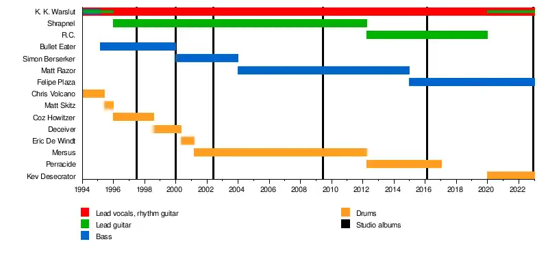 - K. K. Warslut – lead vocals, rhythm guitar (1994–present), lead guitar (1994–1996, 2020–present), bass (1994–1995)