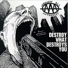Destroy What Destroys You is an album by the American ska-punk band Against All Authority. It was recorded by the band in May 1995 without any affiliation to a label or studio. It was released in 1996 by Far Out Records. The original album contained 18 songs. it was expanded for the CD and cassette release to include four songs from the band's first 7" release, "Above the Law".