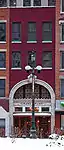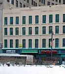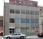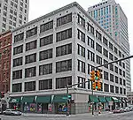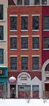 The Traub Brothers Jewelry Building is a four-story wood-frame brick building, built in 1879. Presumably the first floor was used as retail while the upper floors were used as residential space.[27] The building was purchased by Grand Trunk Railroad early in the 20th century, and in 1911 it was renovated to serve as their ticketing office.[1] Grand Trunk removed the second floor and installed a vaulted ceiling reminiscent of period railroad stations.[27] The renovation added a rounded arch on the second floor, filled with paned windows and surrounded by terra cotta detailing with the company's logo.[27] The finely detailed interior woodwork also includes company logos.[27] Although the lower floors of the building were completely altered during this renovation, the upper two floors still retain the original window shapes.[1]