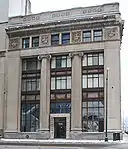 The Standard Savings & Loan Building is an 8+1⁄2-story, flat-roofed office building with a steel frame sheathed in limestone.[1] It was constructed in 1927 designed by Luis Kamper and features work by sculptor Corrado Parducci. Standard Savings & Loan was established in 1893 with offices at the corner of Griswold and Lafayette. The bank moved to the corner of Griswold and Larned in 1913, and in 1927 purchased land at the corner of Griswold and Jefferson, the site of this building. The lot is the site of first building in Detroit, the original Ste. Anne's Catholic Church, constructed in 1701.[22]