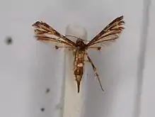 | Deuterocopus planeta Meyrick, 1908, syntype, Natural History Museum specimen NHMUK 010919176 | |