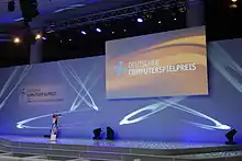 The German Computer Game Award (Deutscher Computerspielpreis, DCP)[1][2] was first awarded on March 31, 2009.[2][3] The awards are given out by the Cabinet of Germany and the German Games Industry Association game.[4] The ceremony includes a certain amount of prize money for specific categories. The requirement to receive the money is that the winner must prove that they will use the check to develop a new computer game that meets the DCP criteria. The distribution of the prize money is also clearly regulated: the developer receives 70 percent of the sum, while the publisher (if available) receives 30 percent.[5] The prize money is donated by supporters and most recently amounted to a total of €800,000 in 2023.[5][6]