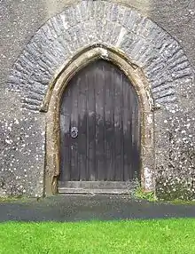 Before and during the Middle Ages, the north face of a church was considered to belong to the Devil and to people considered heathen.[2][3] Churches were invariably built to the north of roads and tracks, to ensure their main entrance was on the south side.[3] It was also common for them to be built on pre-Christian sacred sites. Such places were still considered sacred by their former worshippers, who would often continue to visit them. A doorway would often be inserted in the "heathen" north side of the church to allow them to enter and worship on the site. Because of the association of that side with the Devil, the name "Devil's door" became established.[2]
