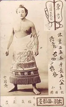 - ↑ "Dewaminato Rikichi Rikishi Information". Sumo Reference. Retrieved 2013-07-12.