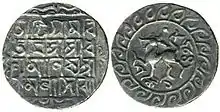 ![]() A silver tanka of Dhanya Manikya (1514) | |