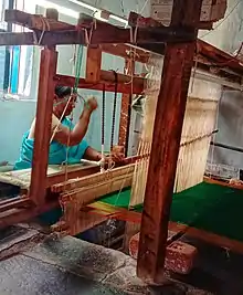- Weaving process – it involves Warp and Weft method of weaving and sometimes replaced by Jacquard weaving and Dobby. Usage of only pitlooms for weaving and no powerlooms and petni technique.