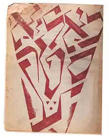 Moshe Broderzon's poem was chosen as a motto of the journal. "Mir yungen, mir a freylekhe tsezungene khalyastre / Mir geyen in an umbavustn veg, / In tife moreshkhoyredike teg / In nekht fun shrek / Per aspera ad astra!" (We, the young, a happy, boisterous gang / We're trodding on an unknown path / through deeply melancholic days / through nights of fright / Per aspera ad astra!). The poem was first published in Moshe Broderzon's journal Yung-yidish in Łódź, 1919.[4]
