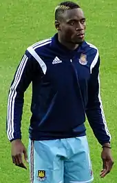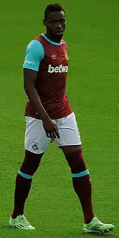 Sakho was injured during a game on 1 January 2015 against West Bromwich Albion.[16] This resulted in him being withdrawn from the Senegal squad for the 2015 Africa Cup of Nations. Senegal officials announced that they would try to prevent him playing for West Ham during the duration of the competition in Africa.[17] With Senegal still involved in the competition, he returned to fitness with officials from the country asking him to fly to Equatorial Guinea so that his fitness could be assessed. Unable to fly to Africa he was taken from London to Ashton Gate by limousine and on 25 January 2015 he scored the only goal in West Ham's FA Cup win against Bristol City.[18][19] On 31 January 2015, with Senegal reported to have reported the case to FIFA, Sakho was withdrawn from West Ham's squad for an away game against Liverpool.[20] West Ham were fined 100,000 Swiss francs by FIFA for playing Sakho in the FA Cup during the Africa Cup of Nations, avoiding a maximum penalty of being expelled from the tournament.[21] Sakho finished as West Ham's top scorer in the 2014–15 season despite finishing the end of the season out injured.[22] He scored 12 goals, 10 in the league and one in both the FA Cup and League.[23]