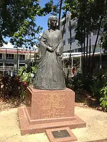 In 1898 a statue of Lady Bowen was commissioned by Angelo Efstathis and sculptured by Brisbane artist Peter Piperides for the Greek Community Centre in South Brisbane. When Old Government House was re-opened after restoration by Queensland University of Technology, on 5 August 2009 the statue was relocated to the western lawn of Old Government House (the western side of the house being the "female" side).[21][22]