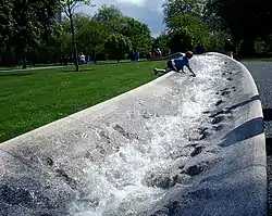 Work on the project began in 2001.[5] The fountain was designed by Gustafson Porter,[6][7] and cost £3.6 million.[8] Kathryn Gustafson, an American landscape artist, said that she had wanted the fountain to be accessible and to reflect Diana's "inclusive" personality. Gustafson said: "Above all I hope that it provides a fitting memorial for the princess and does credit to the amazing person that she was."[3]