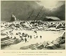 In 1866, while on a whaling expedition in Baffin Bay, Diana became frozen in the ice, where it was trapped for over six months. The ship's captain, 64-year-old[1] John Gravill, and many of the crew died. The diary of the ship's doctor, Charles Edward Smith, was published in the book From the Deep of the Sea. (ISBN 0-87021-932-4). After the death of the Gravill, the ice-master George Clarke takes command of the ship and William Lofley navigates the Diana to Lerwick.[2] There is a memorial fountain to Diana's return from the ice in the town of Lerwick in the Shetland Islands, as many of the crew originated from the islands and all the deceased except the captain were buried there.[3] Charles Smith's services and heroism were recognised by the award of a set of surgical instruments from the Board of Trade.[4] Captain Gravill's body was taken back to Hull, and his funeral was attended by an estimated fifteen thousand people.[5]